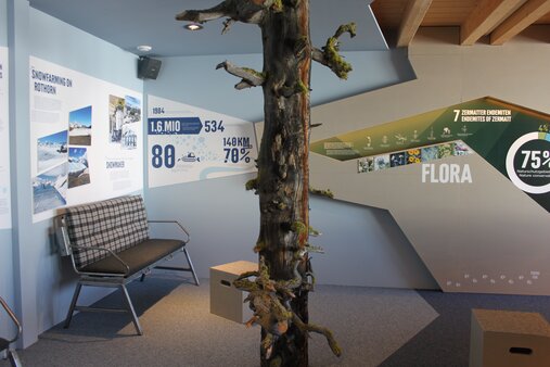 In der schönen Alpine Lounge auf Blauherd werden Gäste auf verschiedene Umweltthemen aufmerksam gemacht und über den nachhaltigen Umgang der Zermatt Bergbahnen mit Ressourcen sensibilisiert. Hier werden Themen wie Solarenergie, Beschneiung, Gletscher, Wild- und Waldschutz sowie die einzigartige Fauna & Flora der Zermatter Bergwelt erklärt.