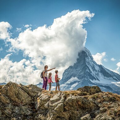 Families taking their summer holidays in Zermatt all agree on one thing: an outing to Leisee is a must. The pretty mountain lake on the Sunnegga sun terrace is a favourite spot for young and old, for a whole variety of reasons.