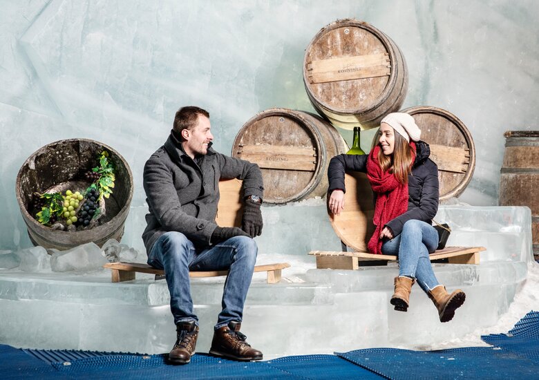 L’atmosfera all’interno del Palazzo è tutt’altro che glaciale. L’illuminazione suggestiva e la musica ti fanno rilassare. Puoi ammirare le opere d’arte in ghiaccio generatesi naturalmente e quelle create ogni anno da artisti. Avventurati nel crepaccio, esplora il tunnel di ghiaccio, accomodati su uno sui sedili ricoperti di morbida pelliccia e goditi l’ambiente fiabesco: tutto risplende, scintilla ed è illuminato.