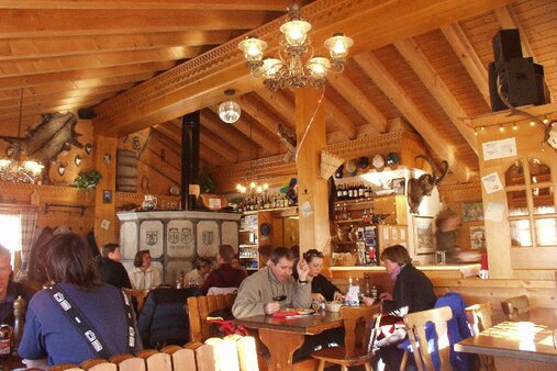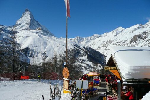 Bergrestaurant - Skihütte mit guter Küche, grossem Giltsteinofen zum Aufwärmen, und super Aussicht aufs Matterhorn.