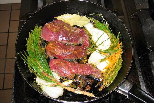 Hirschschnitzel, super Käsefondue, Salate, Fleisch vom Lavastein Grill,